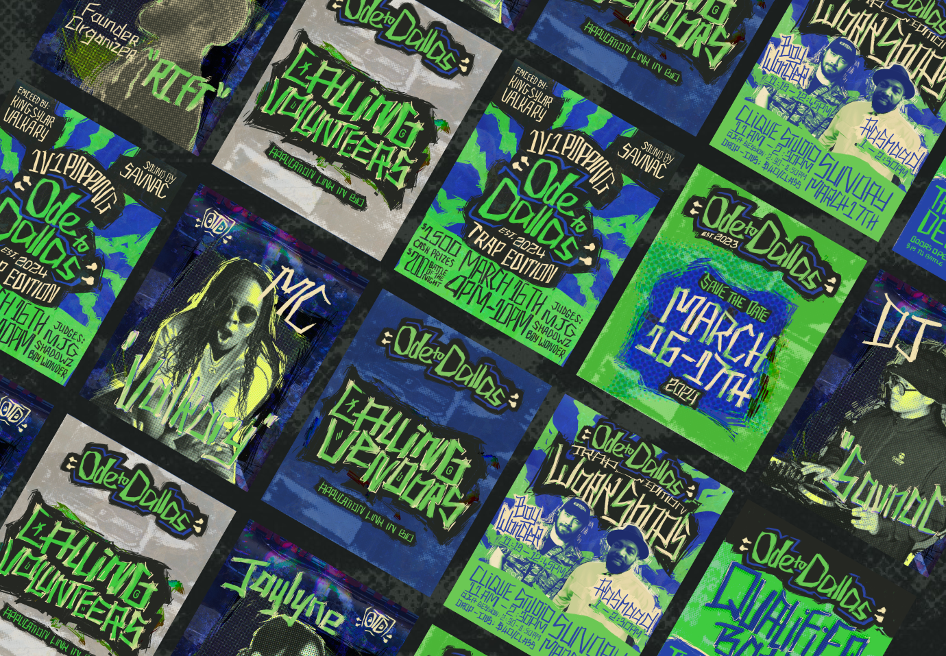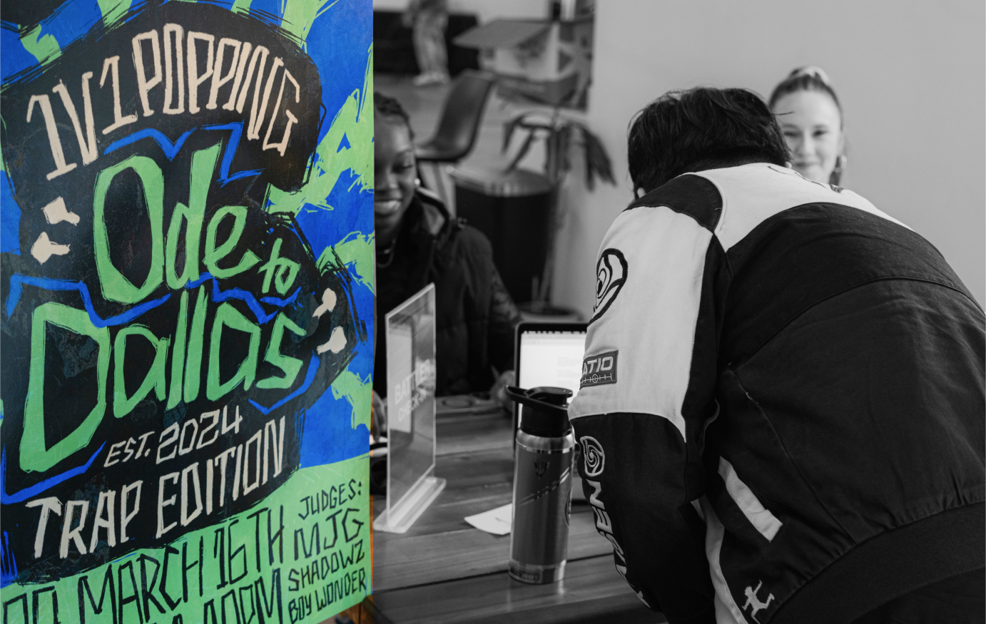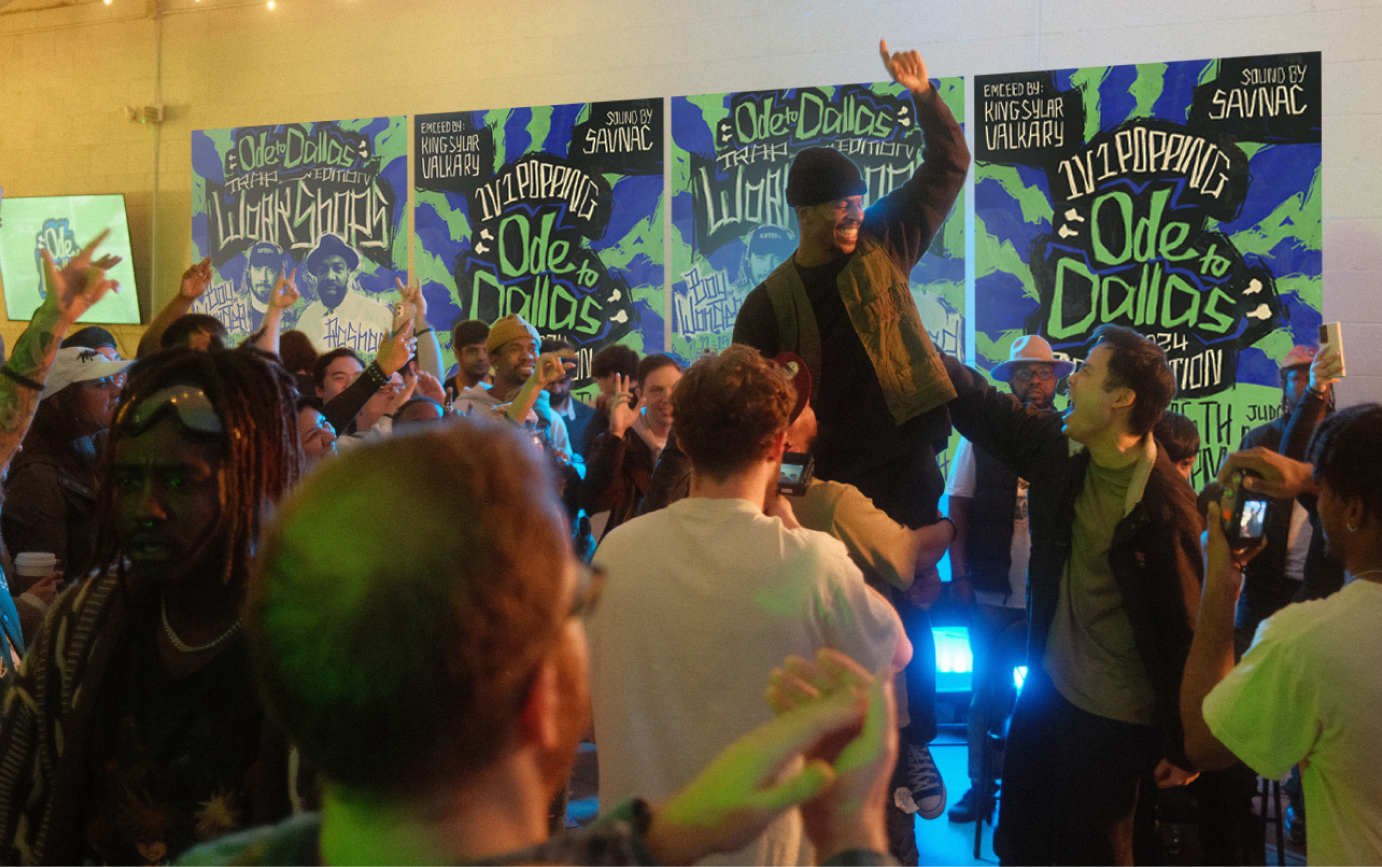 Ode To Dallas visual motif draws direct inspiration from local landmarks and the city's official colors. Street dancers often lack the infrastructure, recognition, and support they deserve. This event series is our way of changing that. By providing a platform for Poppers, the project aim to cultivate an entertaining and educational experience for dancers and dance enthusiasts while amplifying the platforms of homegrown artists.