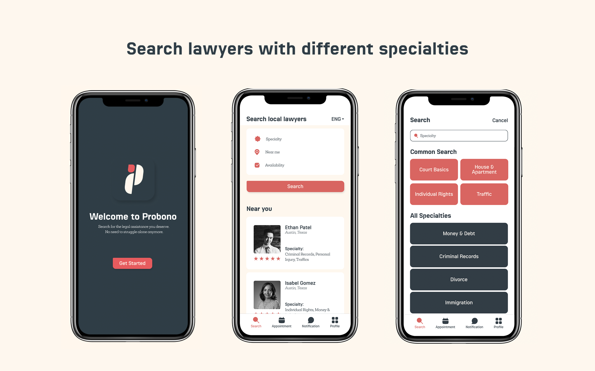 probono lawyers to those who needs legal services at a low cost. The app is a